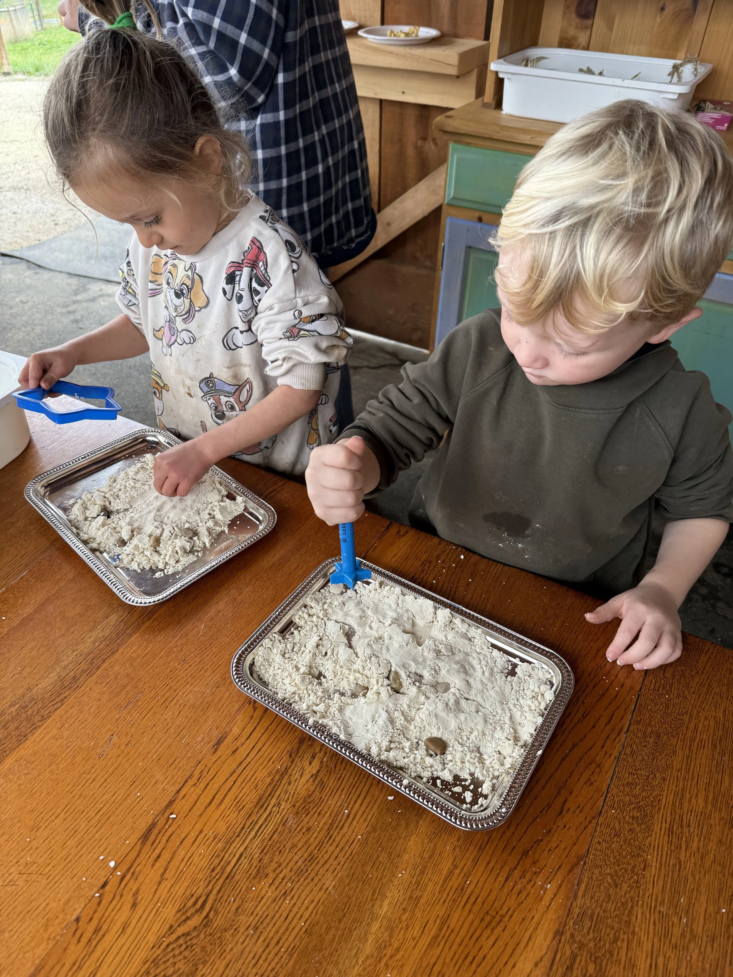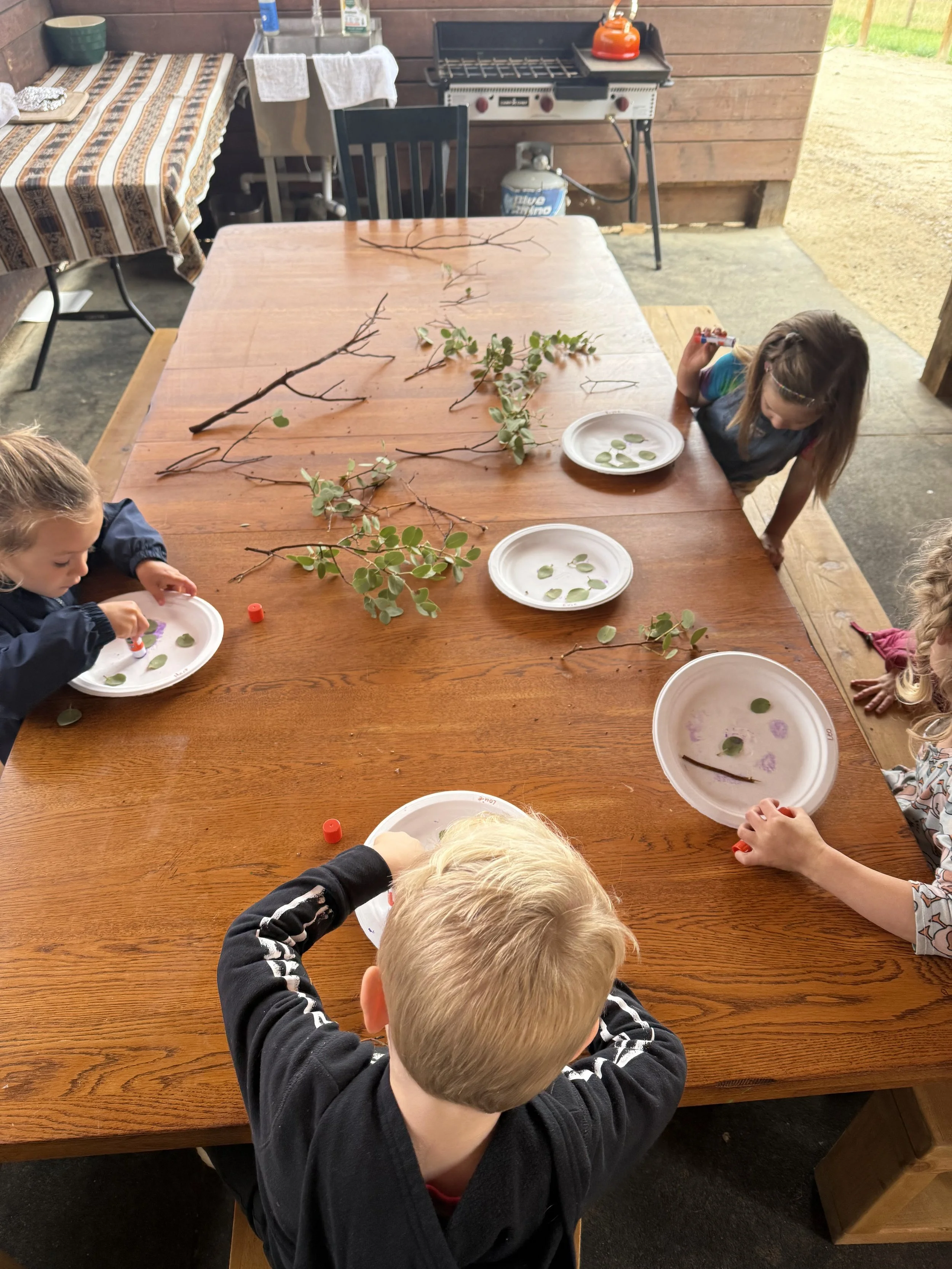 While each day brings something new, our time together follows a gentle daily rhythm that helps children feel secure and engaged. This flow includes a balance of group connection, hands-on learning, outdoor exploration, creative projects, and nourishing breaks. By moving through familiar patterns without a strict timetable, we create space for curiosity, collaboration, and the natural unfolding of the day.