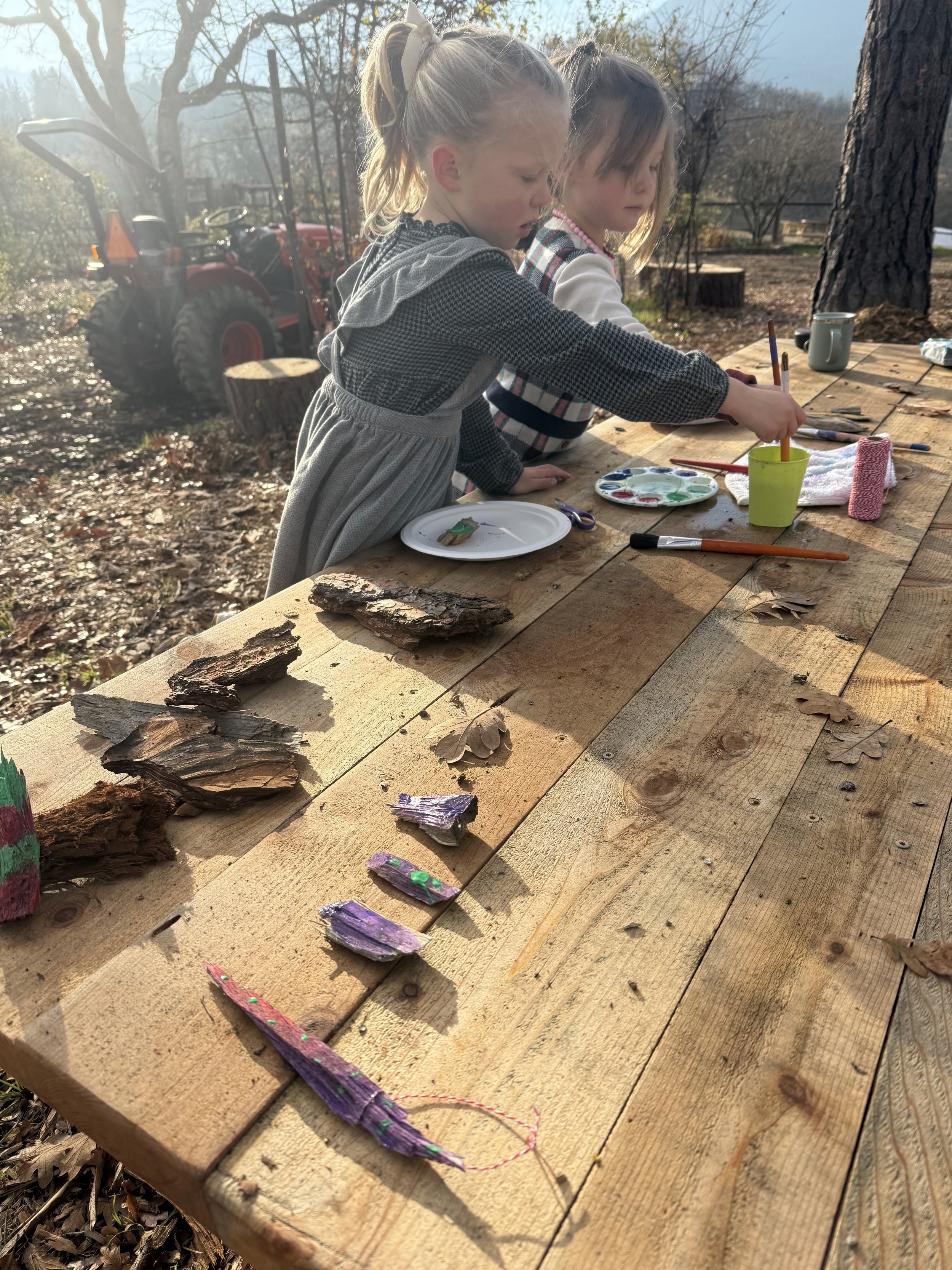 While each day brings something new, our time together follows a gentle daily rhythm that helps children feel secure and engaged. This flow includes a balance of group connection, hands-on learning, outdoor exploration, creative projects, and nourishing breaks. By moving through familiar patterns without a strict timetable, we create space for curiosity, collaboration, and the natural unfolding of the day.