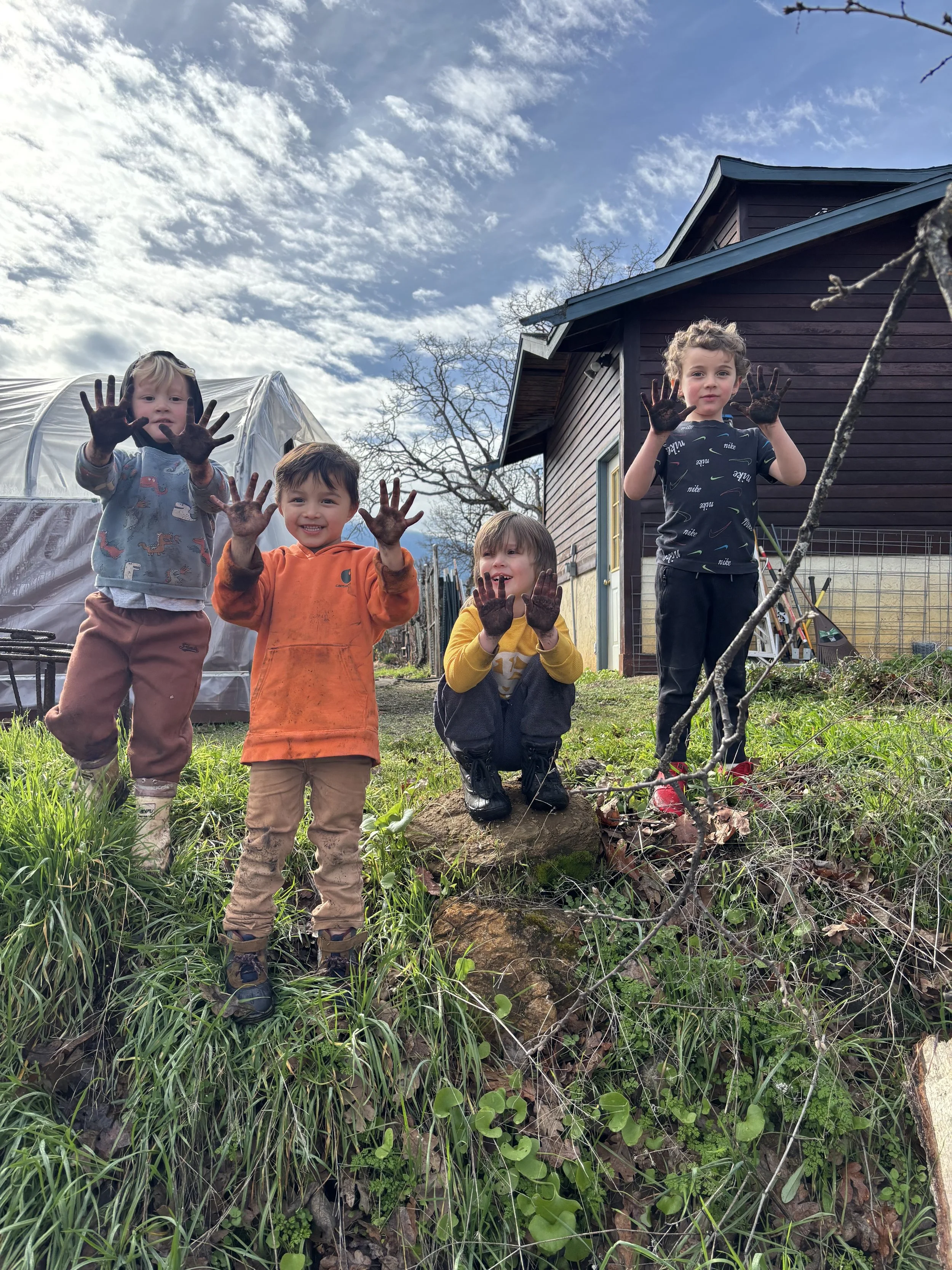 Each week includes hands on animal care, gardening, cooking, crafts, and outdoor play in a small group setting. A day could start in the garden, harvesting tomatoes still warm from the sun. Midmorning brings shared meals prepared together, storytelling under the trees, and creative play with sticks, mud, and imagination. After lunch is for exploration, animal care, and unstructured discovery.
